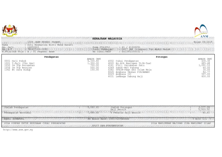 Pdf Penyata Gaji Muhammad Hairul Nazmi Muzaffar Academia Edu