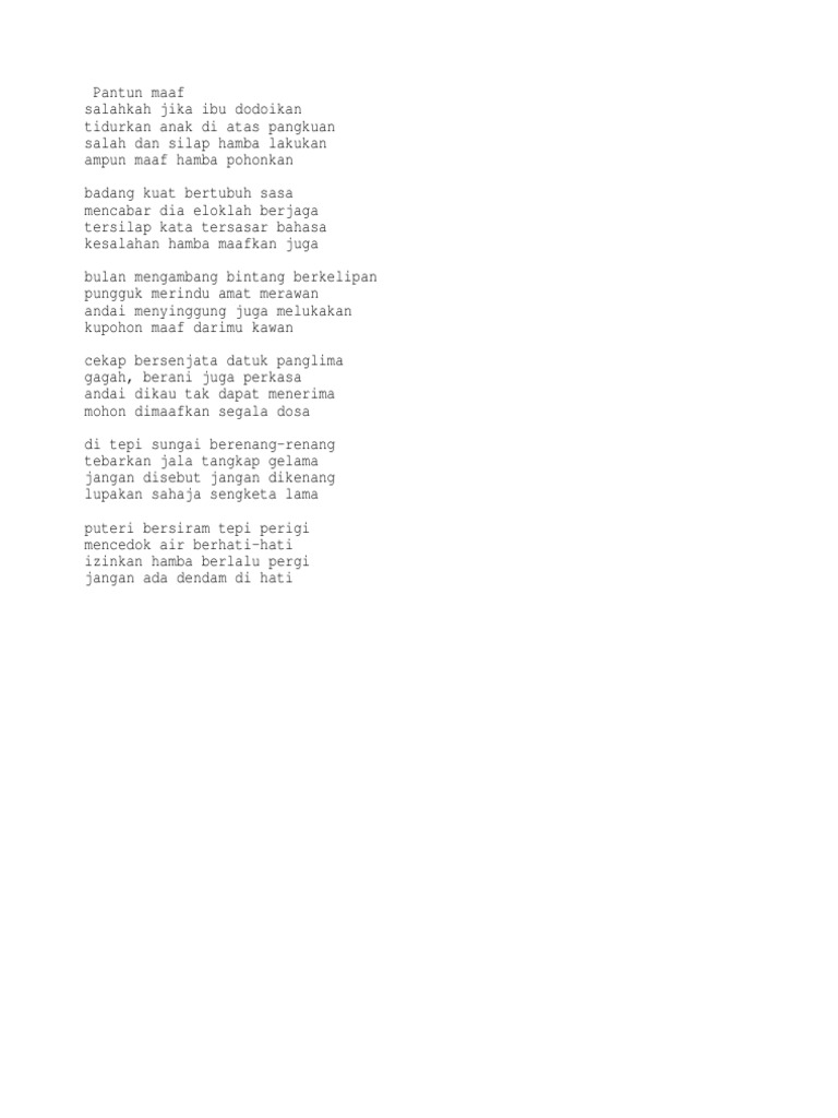 Keluputan kulo lahir batinxtau la. Pantun Sindir Melawak Jangan Ambil Hati. Ucapan Idul Fitri 56 Sungguh cantik kain pelekat Dipakai orang pergi ke pekan.