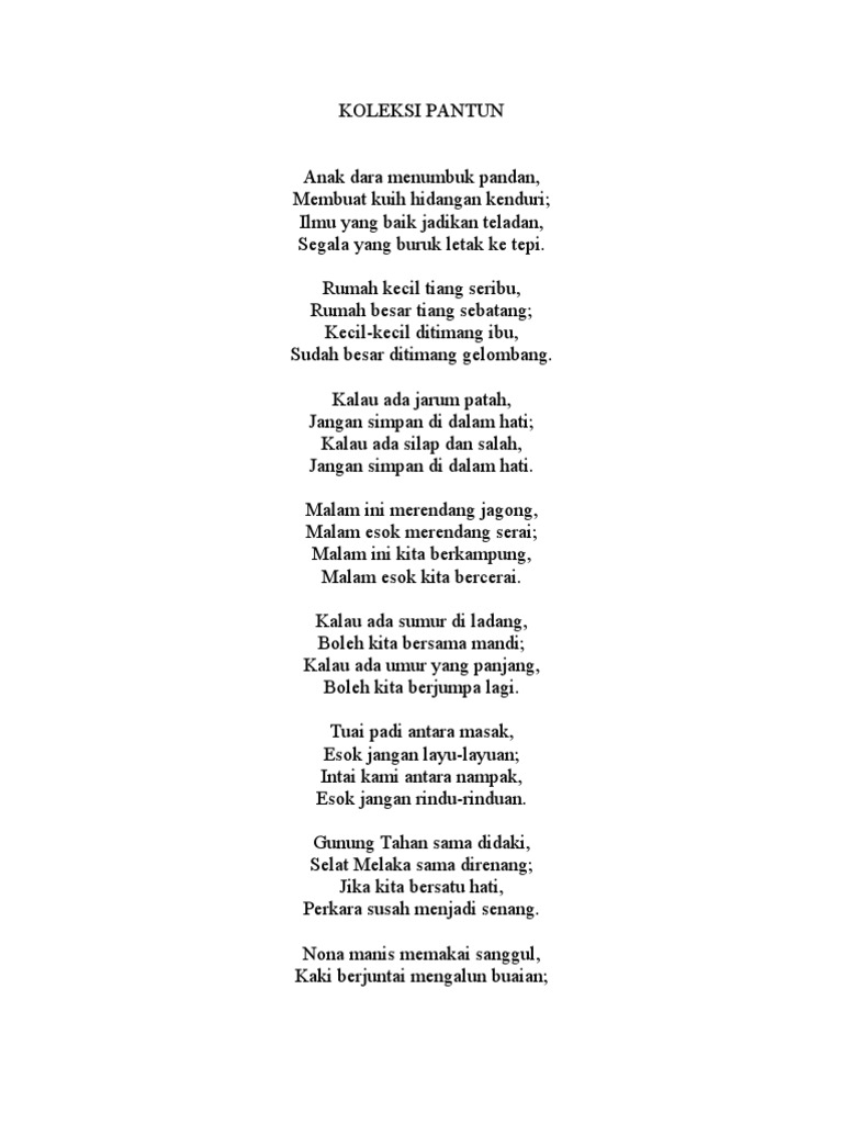 Pantun Mana Nak Sama. Kalau ada jarum yang patah Jangan disimpan di dalam peti Kalau ada silap dan salah Jangan disimpan di dalam hati. Kalau dibontang sebosar alam.